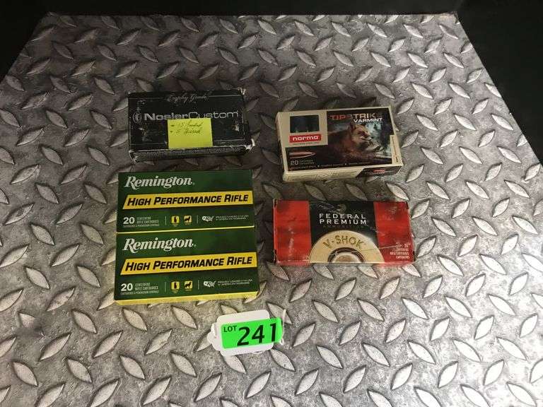 LOT 241 - 95 RDS .22-250 REM, NOSLER, REMINGTON, NORMA & FEDERAL