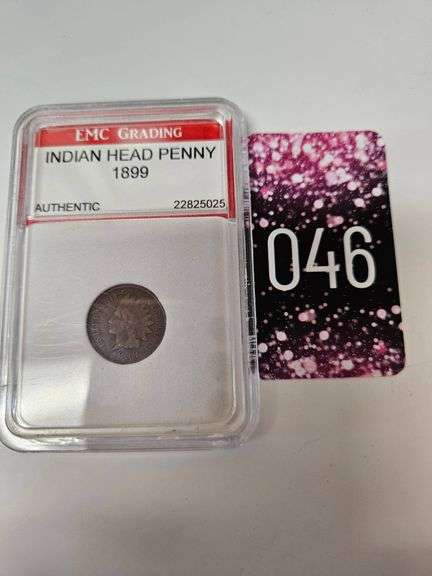 An 1899 Indian Head penny professionally encapsulated and authenticated by EMC Grading. The coin is housed in a sturdy plastic case for protection and ease of display. Features the iconic Native American design on the obverse. Condition details are not specified.